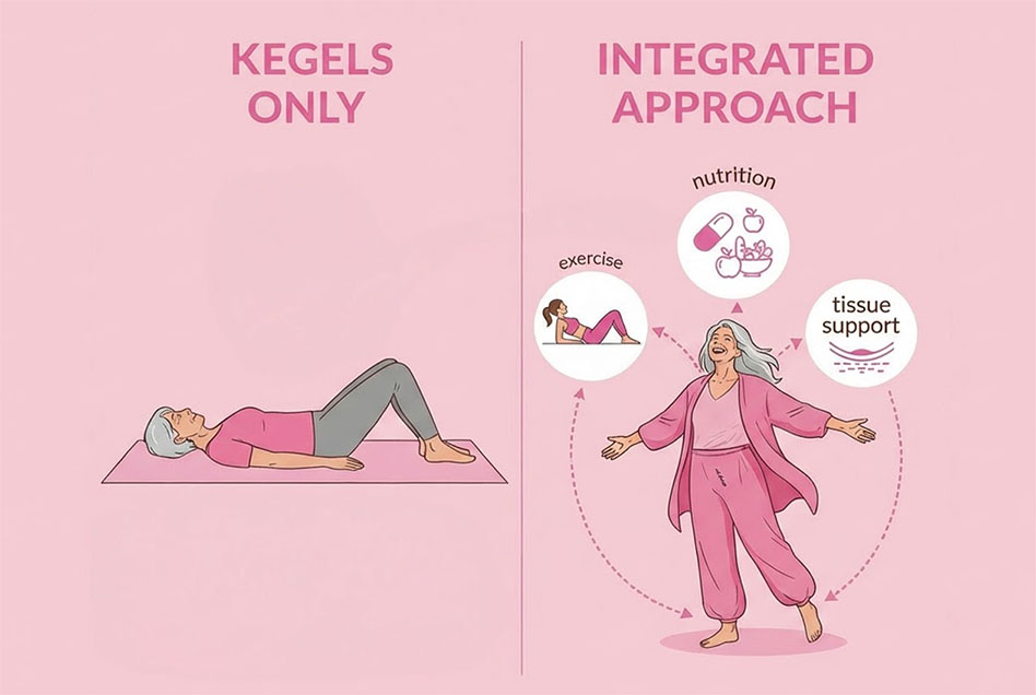 It's why so many women notice urgency and leaks even when they've been doing their Kegels faithfully for years.